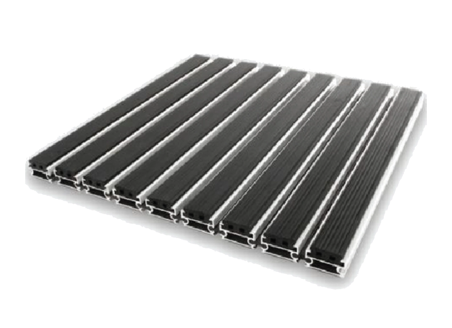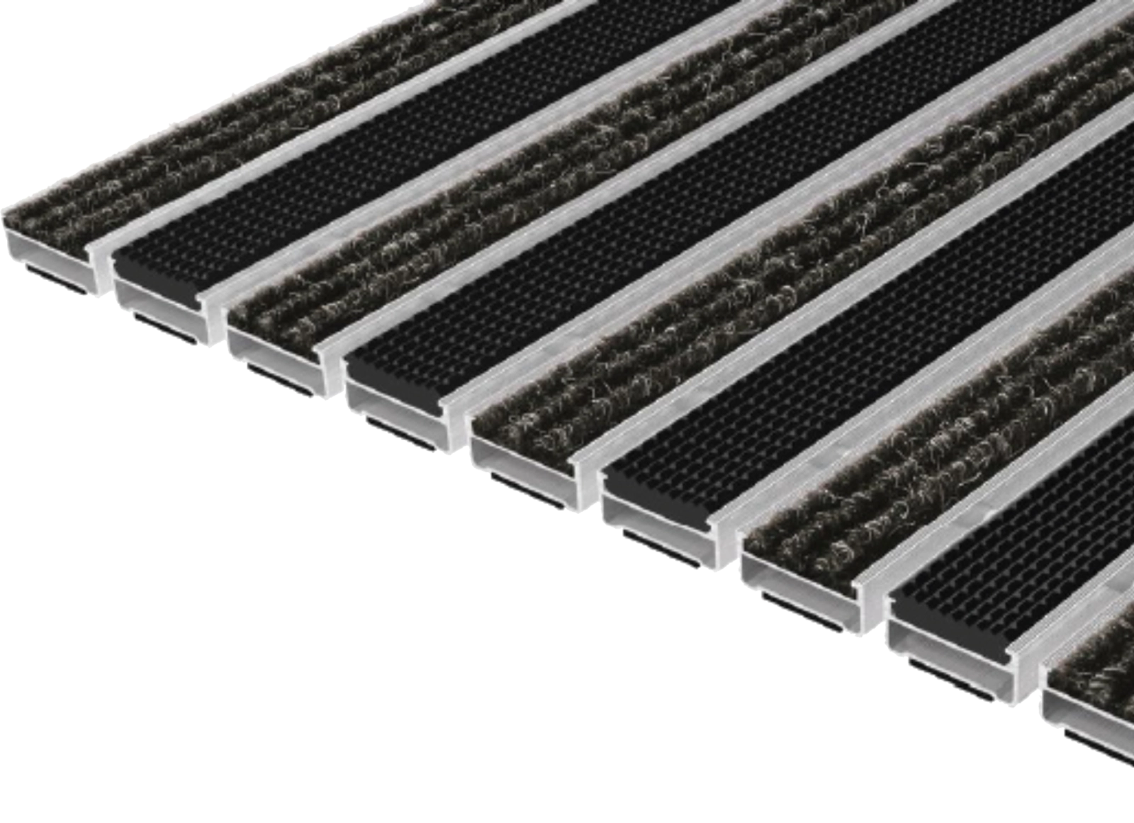 - Aluminium entrance matting: heavy-duty frames with carpet, rubber, or brush inserts